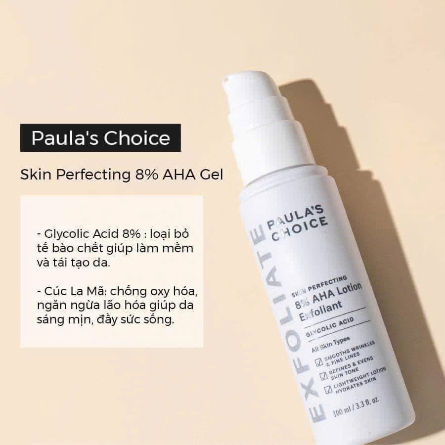 – 8% Glycolic Acid: Loại bỏ tế bào chết, làm mềm và tái tạo da