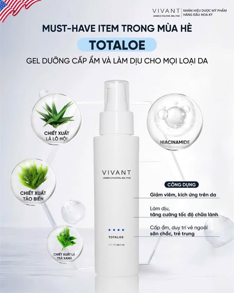 Gel làm dịu dưỡng ẩm Vivant Totaloe phù hợp cho những làn da dầu mụn, nhạy cảm, dễ mẩn đỏ.