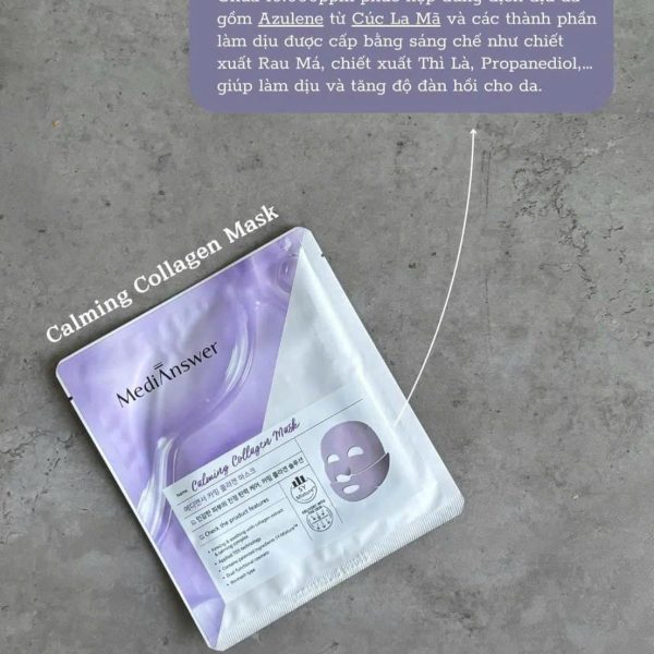 💜𝐌𝐞𝐝𝐢𝐀𝐧𝐬𝐰𝐞𝐫 𝐂𝐚𝐥𝐦𝐢𝐧𝐠 𝐂𝐨𝐥𝐥𝐚𝐠𝐞𝐧 𝐌𝐚𝐬𝐤 (tím): làm dịu da tức thì, phù hợp với da nhạy cảm, kích ứng.